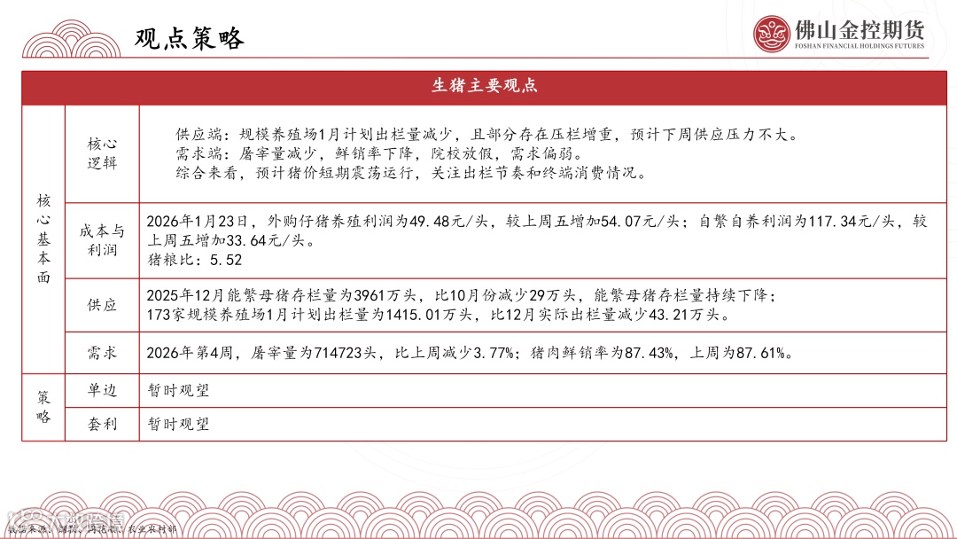 【周报|玉米&生猪】玉米短期上行空间有限,生猪震荡运行(2026年1月23日当周)