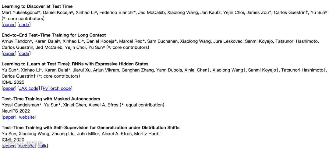 通讯作者Yu Sun现为斯坦福大学博士后,同时任职于英伟达,研究方向为持续学习,长期致力于测试时训练技术的研究推进。