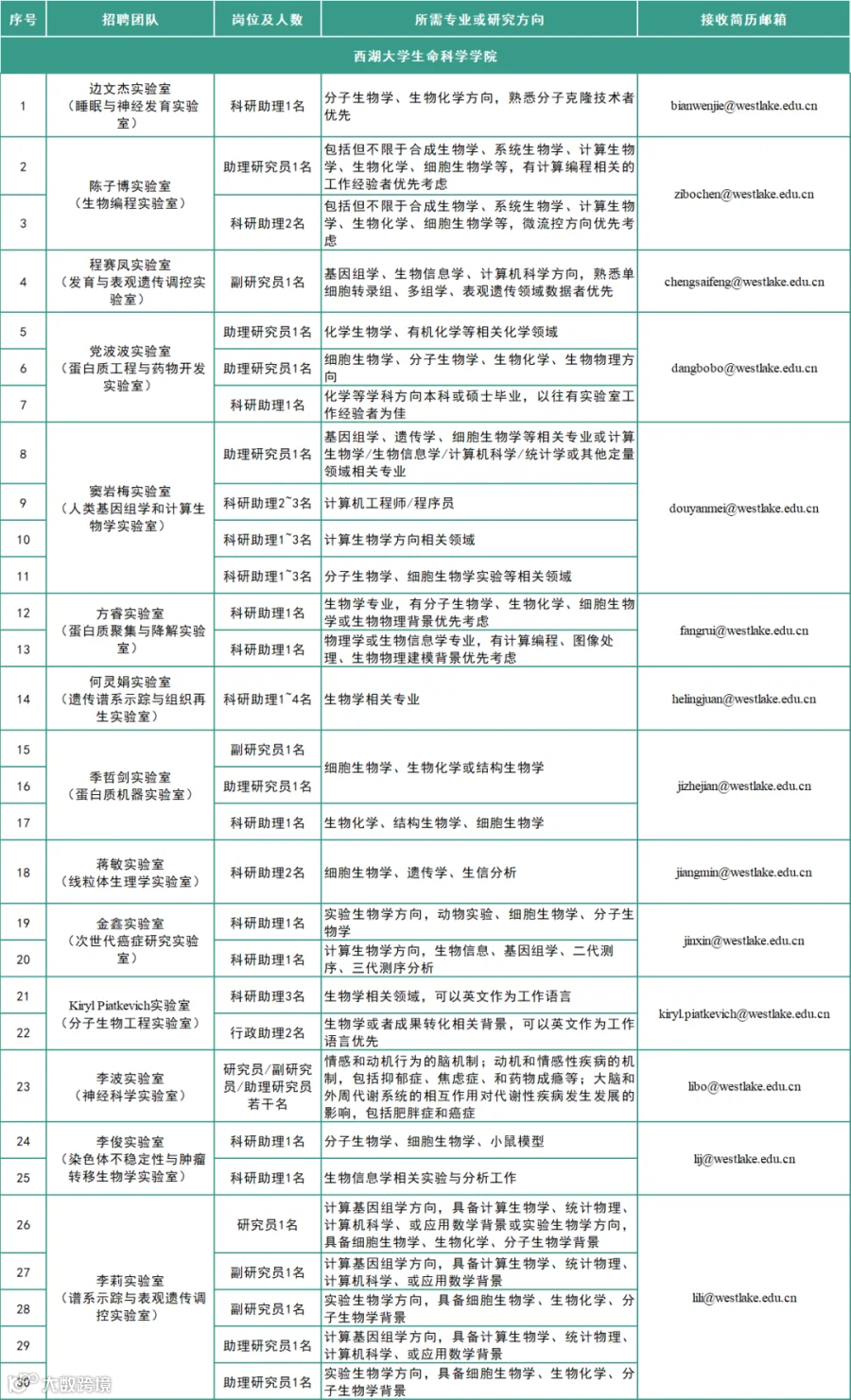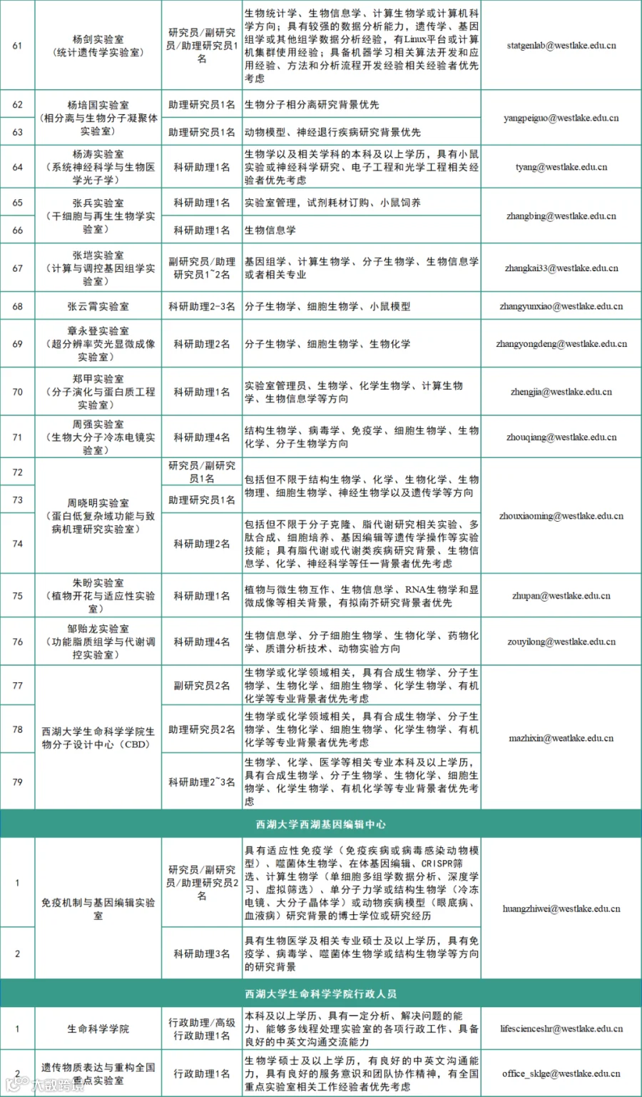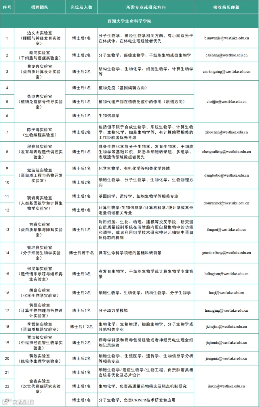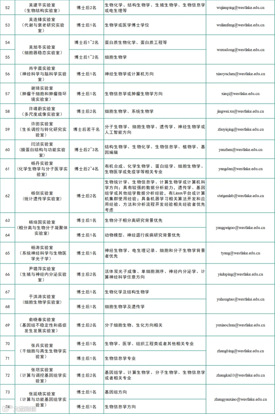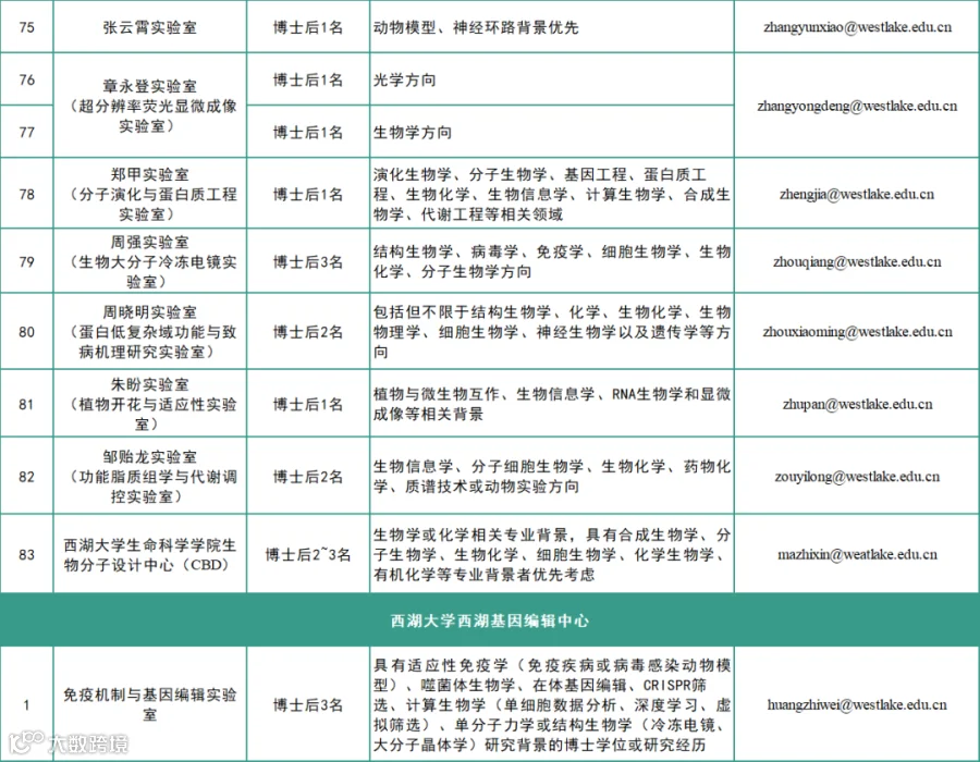 *具体招聘要求详见各实验室招聘广告。