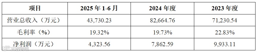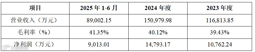 报告期内,公司营业收入分别为116,813.85万元、116,813.85万元和89,002.15万元,毛利率分别为39.43%、40.12%、41.35%,净利润分别为10,762.24万元、14,793.17万元和9,013.01万元。