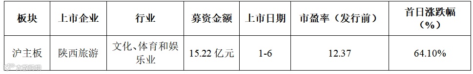 2026年1月5日至2026年1月11日共有1家IPO企业发行上市,具体情况如下。