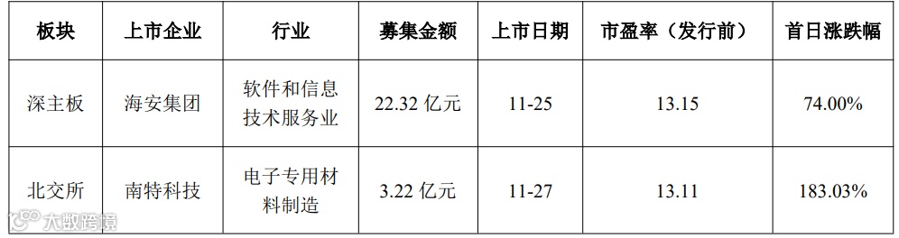 根据中国证监会、上海证券交易所、深圳证券交易所、北京证券交易所的信息,2025年11月24日至2025年11月30日A股IPO相关情况如下: