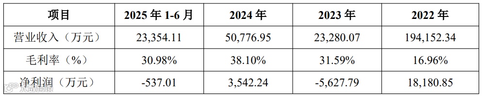 报告期内,公司营业收入分别为194,152.34万元、23,280.07万元、50,776.95万元和23,354.11万元,毛利率分别为16.96%、31.59%、38.10%和30.98%,净利润分别为18,180.85万元、-5,627.79万元、3,542.24万元和-537.01万元。