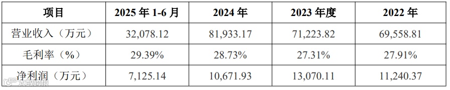 报告期内,公司营业收入分别为69,558.81万元、71,223.82万元、81,933.17万元与32,078.12万元,毛利率分别为27.91%、27.31%、28.73%与29.39%,净利润分别为11,240.37万元、13,070.11万元、10,671.93万元与7,125.14万元。