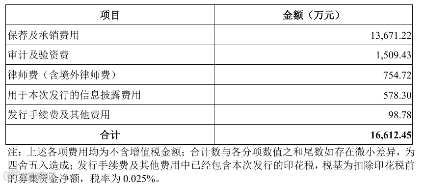 本次发行费用总额为16,612.45万元,本次发行费用明细构成如下: