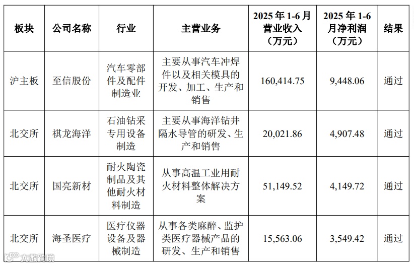 2025年11月3日至2025年11月9日有4家IPO企业上会并过会,具体情况如下: