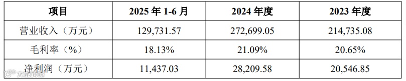 报告期内,公司营业收入分别为214,735.08万元、272,699.05万元和129,731.57万元,毛利率分别为20.65%、21.09%和18.13%,净利润分别为20,546.85万元、28,209.58万元和11,437.03万元。