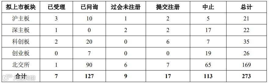 截止2025年11月9日,IPO排队情况:共273家,其中沪市主板21家,深市主板共22家,科创板共35家,创业板共26家,北交所共169家。