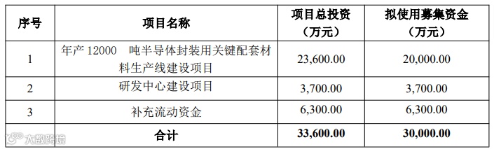 年产12000 吨半导体封装用关键配套材料生产线建设项目实施地点位于四川省绵阳市,计划新建厂房并购置生产线,项目建成后能够实现年产半导体封装用关键配套材料 12,000吨,包括半导体先进封装用环氧模塑料 6,000 吨、液体环氧及环氧膜封装材料 4,000 吨(其中环氧膜封装材料 10 吨)、有机硅封装材料 2,000 吨,其中有机硅封装材料 2,000 吨及环氧膜封装材料 10 吨拟以自有资金投入。