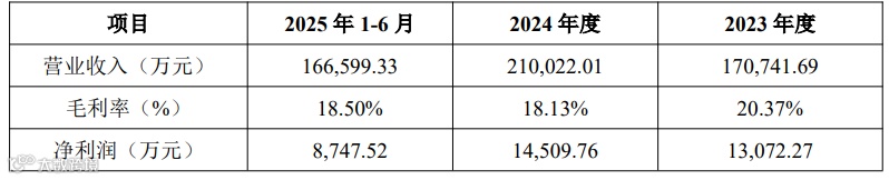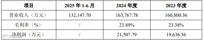 报告期内,公司营业收入分别为160,800.36万元、163,767.78万元和132,147.70万元,毛利率分别为23.38%和23.89%,净利润分别为19,636.36万元和21,507.79万元。