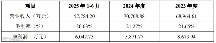 报告期内,公司营业收入分别为68,964.61万元、70,708.88万元和57,784.20万元,毛利率分别为21.65%、21.27%和20.63%,净利润分别为8,673.94万元、5,871.77万元和6,042.75万元。
