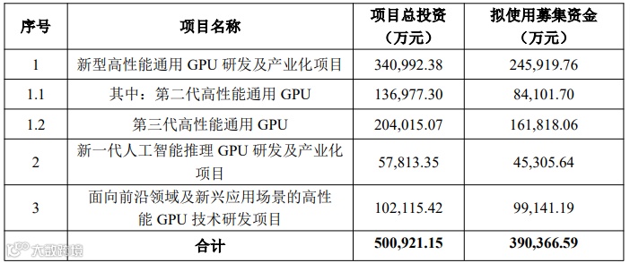 “新型高性能通用GPU 研发及产业化项目”包括公司第二代高性能通用GPU 芯片(代号 C600)和第三代高性能通用 GPU 芯片(代号 C700)两个研发子项目,基于国产先进工艺开发具备较高性能和更高性能的两款通用 GPU,应用于 AI 训练及推理、通用计算等场景,是公司曦云 C 系列训推一体芯片的后续主力产品。“新一代人工智能推理 GPU 研发及产业化项目”系公司研发下一代基于先进封装技术的云端大模型推理芯片(代号 Nx),主要用于生成式 AI 推理。前述募投项目的顺利实施,将帮助公司完成现有核心产品线的持续迭代升级,巩固行业领先地位,进一步扩大市场份额,是公司未来几年主营业务发展及收入增长的重要基础和核心驱动。