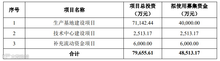 其中:生产基地建设项目围绕当前主营业务展开,系公司现有橡胶履带及履带板产能的搬迁及扩建,建成后将承担公司主要的生产职能,扩大公司业务规模,为公司带来良好经济效益;技术中心建设项目为提升公司主营业务技术研发及自主创新能力而设计,建成后将为现有业务发展提供有力的技术保障;补充流动资金项目是公司为支撑后续业绩发展、产品推广等对流动资金需求而设立,有利于改善公司财务状况,为公司后续扩张和发展奠定基础。