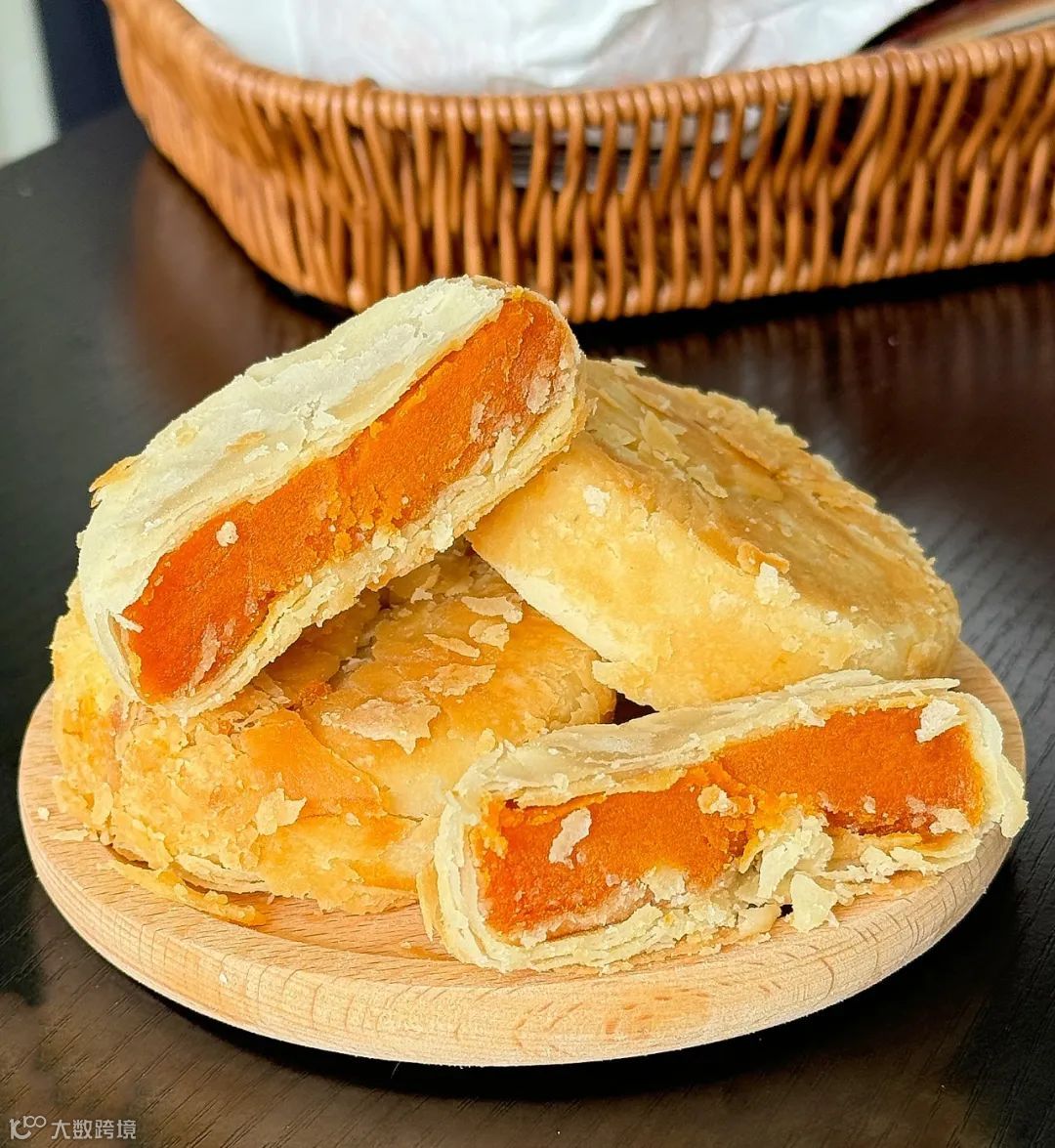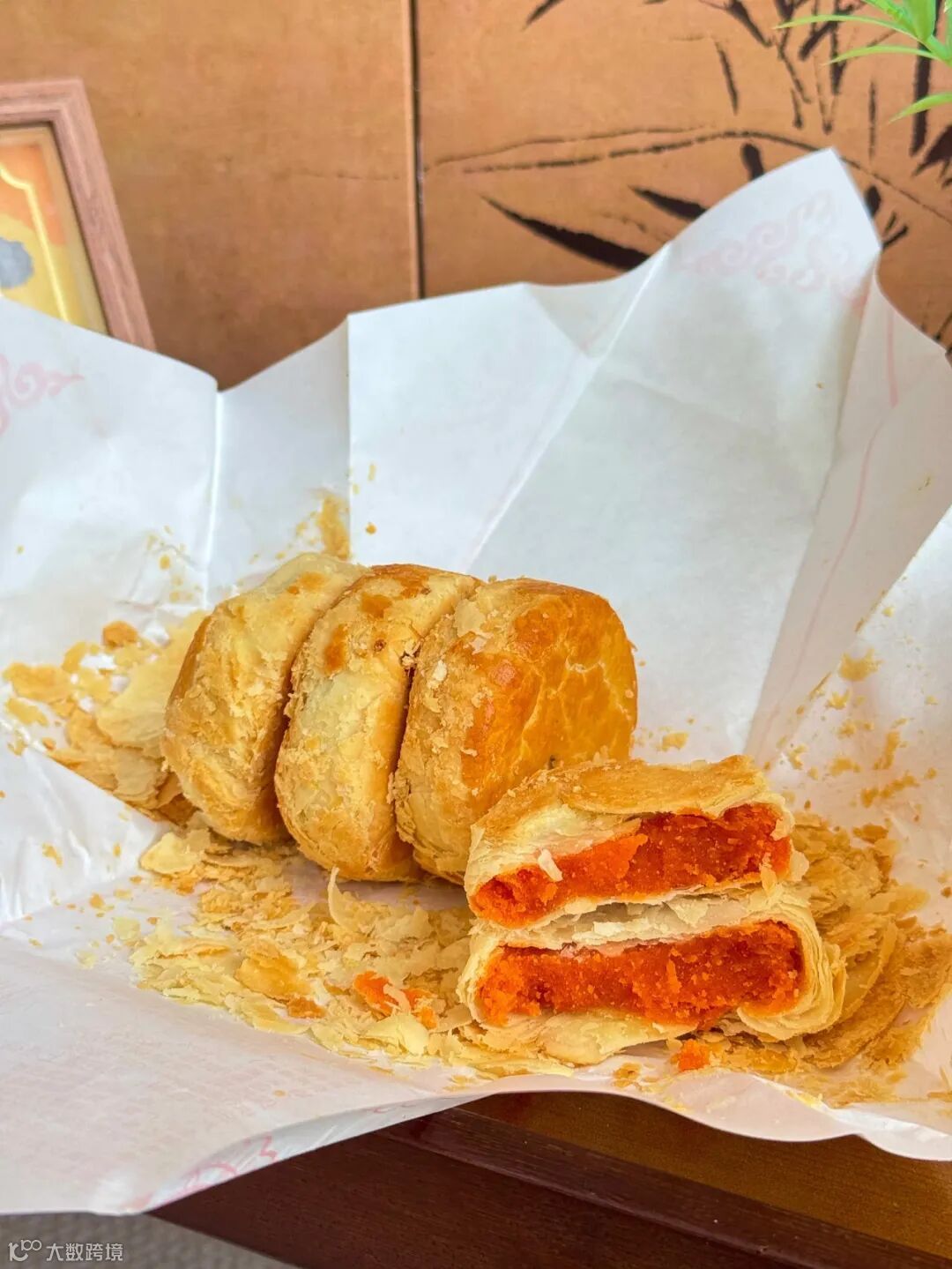 外皮酥香,隔着包装即可闻到香味。内馅橙黄沙糯,一抿即化,为当地最受欢迎口味之一。