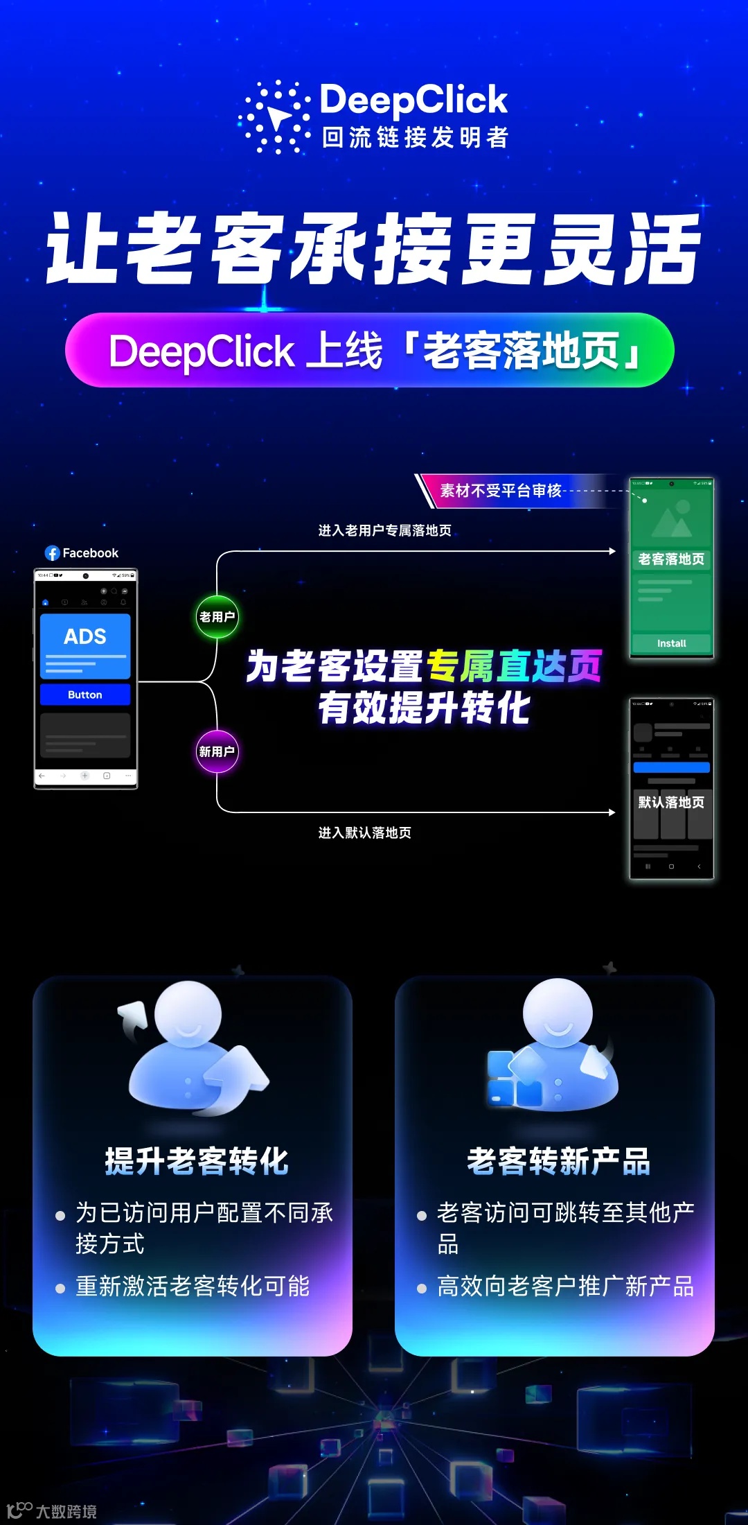 同时,由于广告审核仍基于原始广告素材与链接完成,老客落地页的承接内容不额外触发广告审核流程,承接表达与信息呈现也更加灵活。