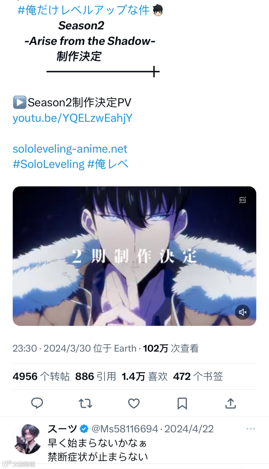 同时,在日本niconico平台的《我独自升级》动画也已于上个月完结。出于对动画的喜爱,期待第二季的观众也可能会成为游戏的受众。另外,该动画也在奈飞上线,借助更具全球化影响力平台,覆盖到的观众群体更广泛。