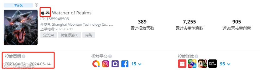苹果端的投放时间则是在2023年4月中下旬(公测前不到3个月),但之后的投放节奏、投放方法论与安卓端保持一致。