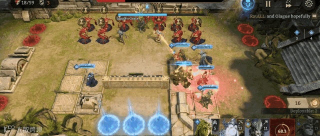 局内敌人会根据设定路线分批进攻,玩家最多能同时带十张英雄卡牌,每张卡牌需要相应点数才能上场,部署过程中,玩家除了需要在系统允许的平地、高台等不同位置放置不同类型的卡牌英雄外,还需要根据其攻击和技能效果范围来考虑卡牌朝向。