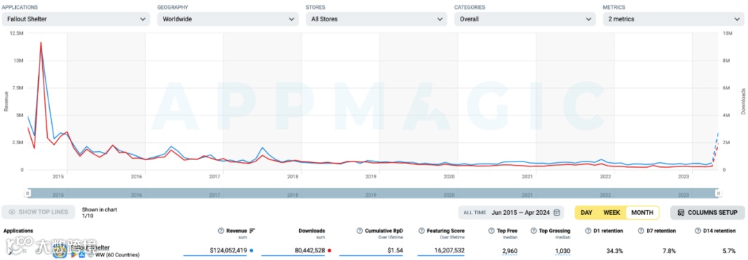 自推出以来,《辐射避难所》的下载次数已超过7900万次,总收入超过1.22 亿美元。即使在上市9年后,该游戏每月仍能获得约50万美元的收入。