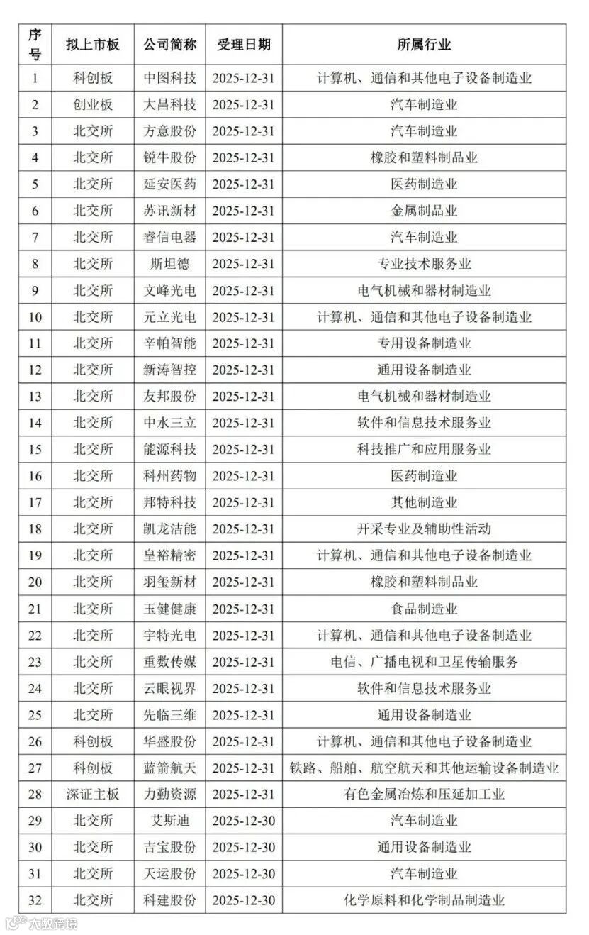 2025年12月29日至2026年1月4日新增受理56家,具体情况如下: