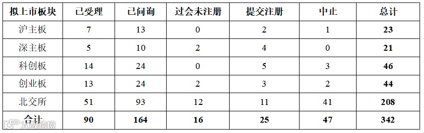 截止2026年1月4日,IPO排队情况:共342家,其中沪市主板23家,深市主板共21家,科创板共46家,创业板共44家,北交所共208家。