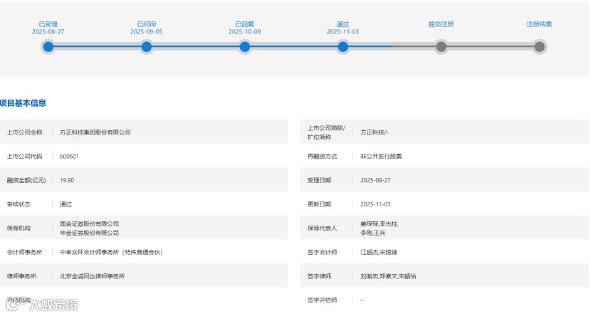 恭喜我们的客户方正科技向特定对象发行股票申请获通过!