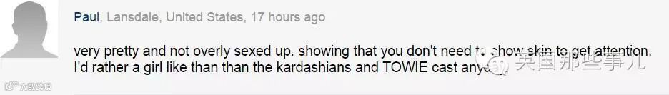 “美极了。我希望女孩们都能像她这样,而不是像小丑和卡戴珊的结合体...”