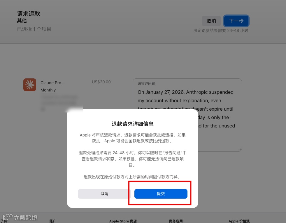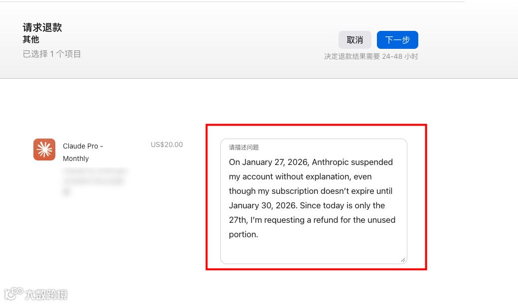 下面说正事,claude 账号被封之后,怎么去申请退款?
