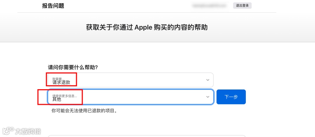 选择「请求退款」和「其他」,然后点下一步