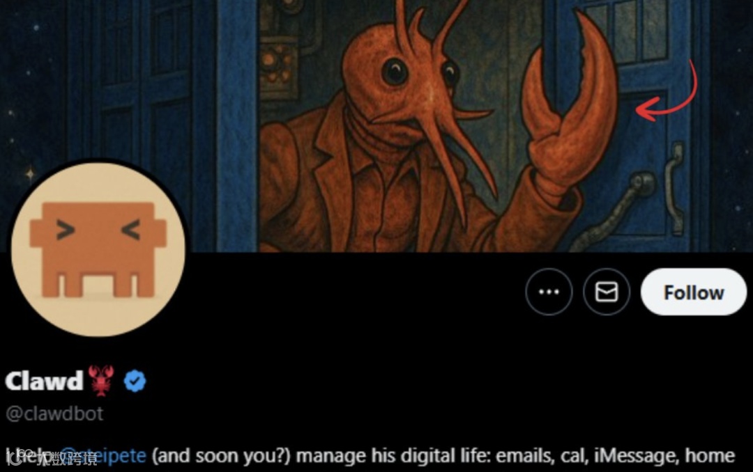 “Clawdbot”(螯爪机器人)名称源自Claude Code卡通形象——一只拟人化龙虾,社区中早有“Clawd”等非正式简称。项目初版𝕏头像亦高度还原该设计。