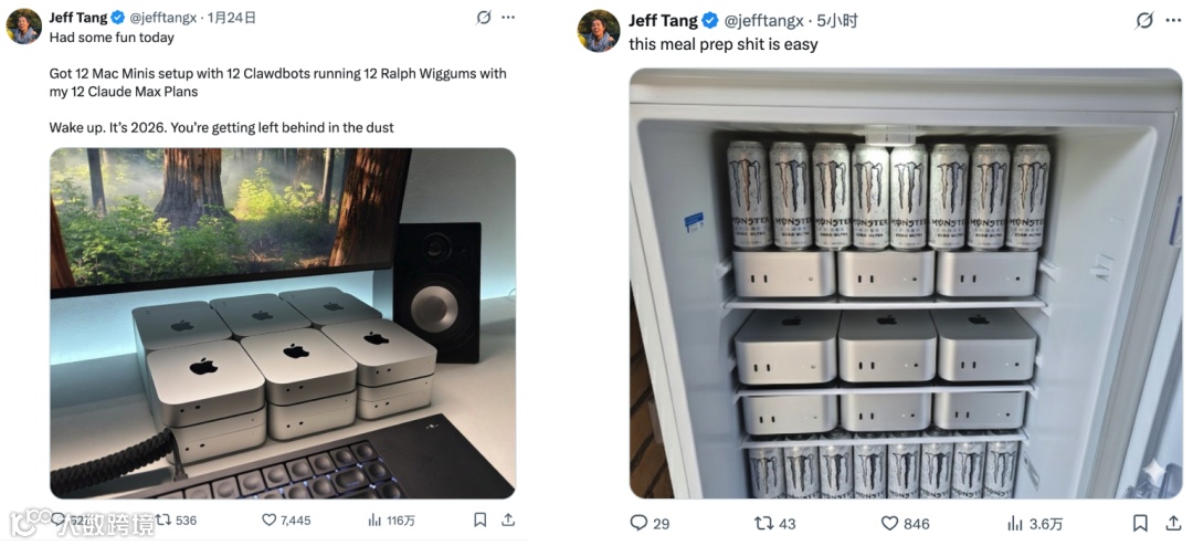凭借强大实用性,Moltbot迅速风靡硅谷。Mac Mini因成本低、环境贴近个人用户且不易触发风控,成为首选部署平台,引发抢购潮。有用户晒出囤积12台Mac Mini并放入冰箱的照片,调侃“meal prep就是这么简单”。