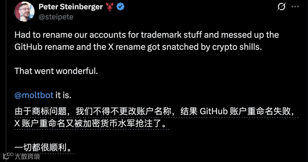 开发者Peter Steinberger证实,Anthropic公司要求其停止使用“Clawdbot”名称,更名并非出于自愿。