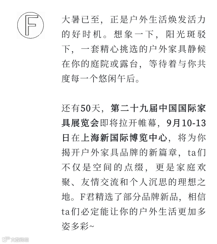 坚持原创设计,获欧盟及国内设计专利超300项,屡获国际奖项。以“打造中国高端户外家具国际品牌”为使命,致力于成为中国制造高品质象征的百年企业。