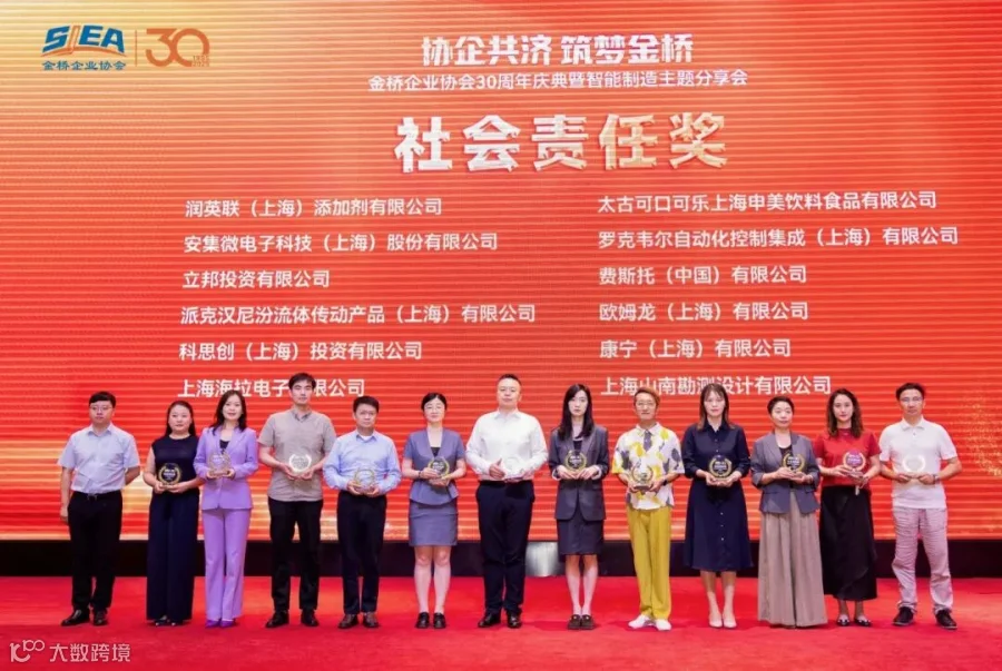 会议回顾了金桥企业协会三十年来砥砺奋进的发展历程,围绕智能制造领域的前沿趋势、技术创新与产业机遇展开深入交流。公司凭借在履行社会责任方面的突出表现,荣获金桥企业协会颁发的“社会责任奖”,朱盼盼荣获“金纽带奖”。