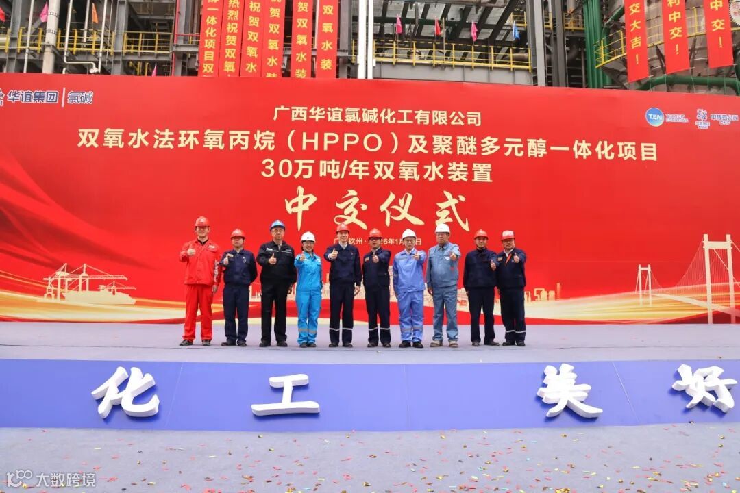 HPPO项目是华谊集团战略布局西南、对接东盟、延伸高端新材料产业链的核心项目之一,承载着优化产业结构、培育新增长点的重要使命,也是上海氯碱实施“走出去”战略、积极融入新发展格局、发展新质生产力的关键举措。此次中交的双氧水装置,采用国际先进的蒽醌法流化床工艺技术,具有产品浓度高、运行安全性强、环保效益突出等优势,相较传统工艺可减少80%的废水排放,是目前国内单线产能最大的流化床双氧水装置。