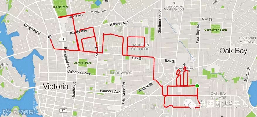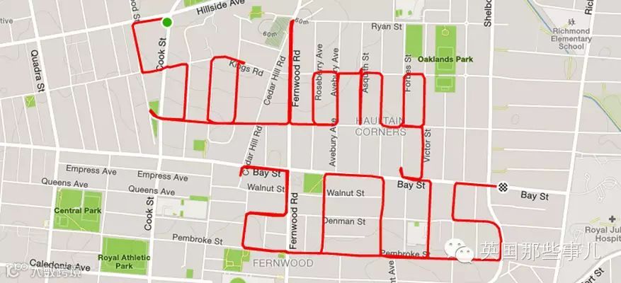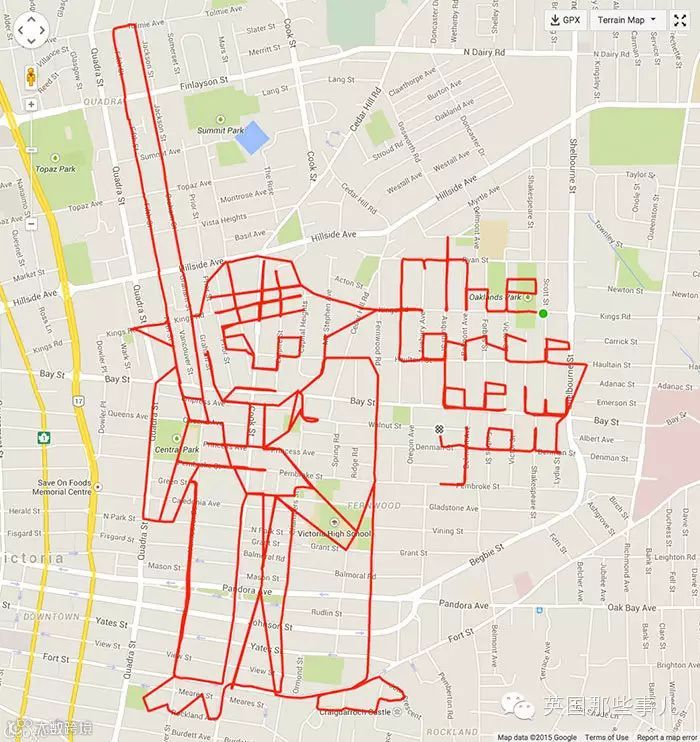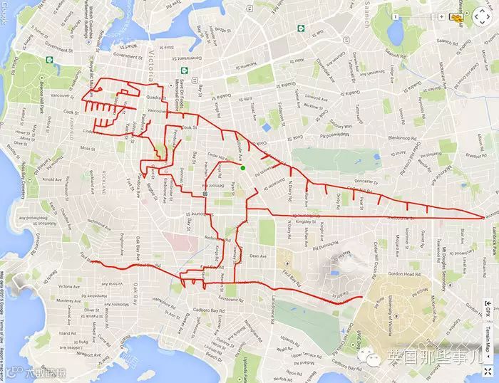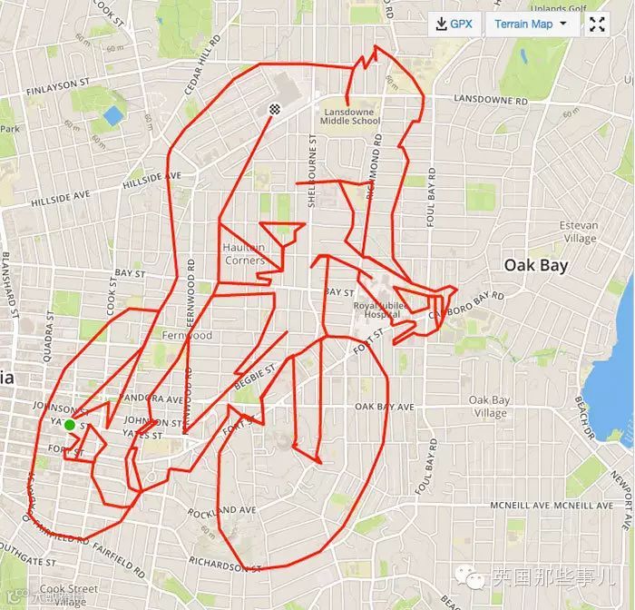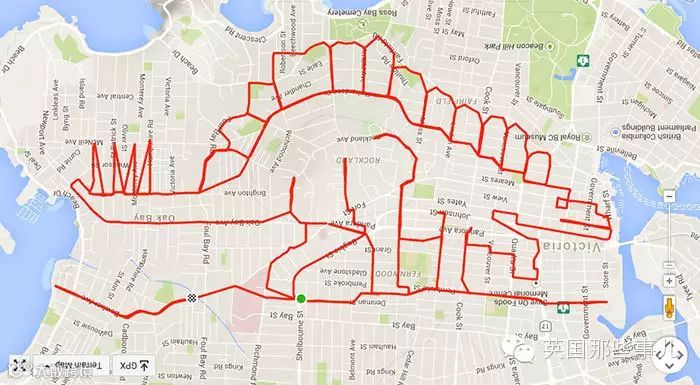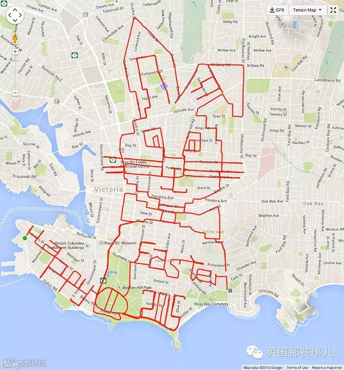- 维多利亚女王:56分钟骑行15.8公里绘制而成;