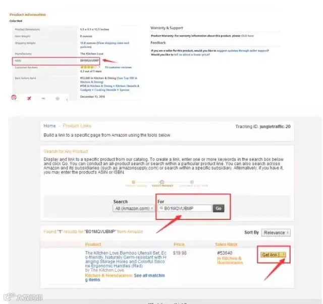 以ASIN: B01MQVUBMP为例,先在亚马逊找到对应商品页,滚动至底部获取ASIN编号,再返回Affiliate后台输入查询。