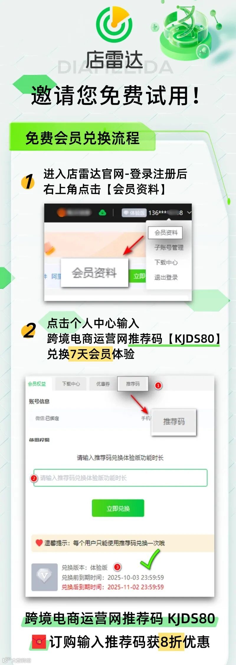 开通店雷达可使用推荐码:KJDS80(享8折优惠)