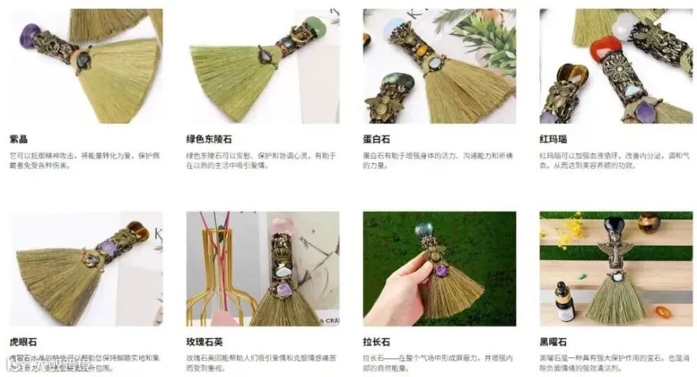 水晶扫帚的爆发并非偶然,而是精准切入三大关键点: - **文化适配性**:欧美市场对水晶认知成熟——黄水晶象征财富、粉水晶代表爱情、紫水晶寓意灵性与力量;而扫帚在西方本就关联“仪式”“清理”“结界”。二者结合后,“清扫负能量、迎接好运”的叙事自然成立,完成从工具到仪式道具的跃迁。 - **短视频友好性**:清扫动作具节奏感,水晶反光自带视觉张力,“能量叙事”天然适合讲故事。一条展示制作过程+简述水晶寓意的短视频,即可触发裂变传播。 - **Z世代情绪出口**:欧美Z世代面临学业、就业与生活多重压力,却缺乏稳定宣泄渠道。相比宗教或专业心理干预,水晶类玄学饰品更轻量、私密、低成本,成为可随时启动的情绪安放方式。水晶扫帚将焦虑转化为一个简单、可重复的动作,本质上是一种“情绪仪式感”。中国供应链:把概念快速变成订单