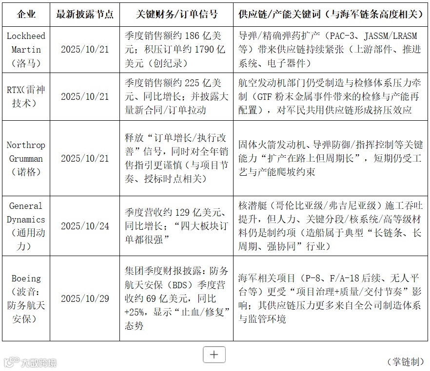 波音、洛马、雷神等公司近年来在财报中也多次提及供应链问题对交付的影响。可以预见,围绕供应链安全的竞争,已成为美海洋军工企业在经济全球化逆流中不得不面对的长期课题。