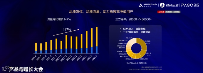随着HUAWEI Ads的快速发展,开发者也得到了实实在在的收益,2022年Q2开发者的广告流水每月同比增长都超过100%。