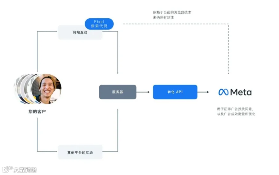 转换API是Meta推出的一款业务工具,可直接关联用户的营销数据与Meta系统。让用户使用营销数据来优化广告,定位、降低单次操作费,更准确地衡量营销成效,同时尊重用户对其数据使用方式的选择,在尊重用户隐私的前提下,提升营销效果。转化API可从如下四方面优化当前的营销表现。