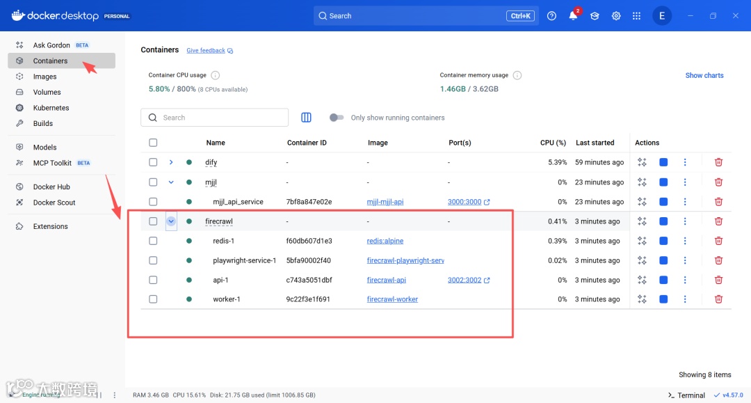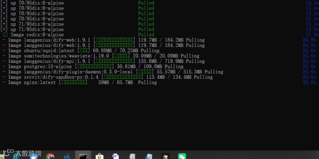 dify、mjjl、firecrawl子目录,分别执行:docker compose build