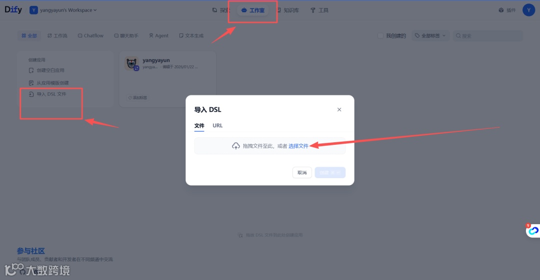 - 工作流导入:上传
