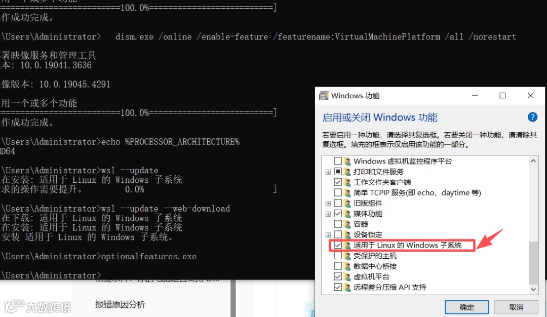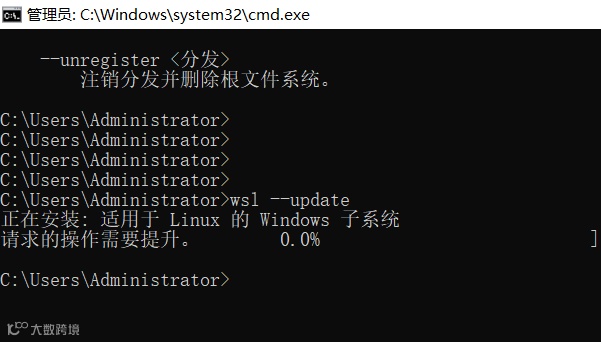 wsl --update更新Windows子系统(Windows平台必需)。