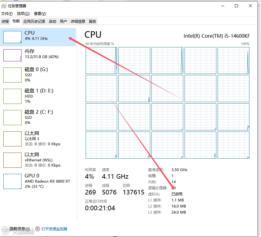 - 确保系统已开启虚拟化(任务管理器→性能→虚拟化:已启用);