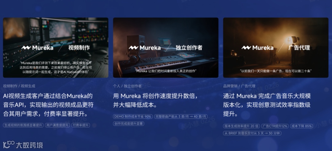- 工具:C端Mureka创作平台开箱即用;进阶版Mureka Studio面向DAW用户,将“操作软件”升级为“指挥创作”;