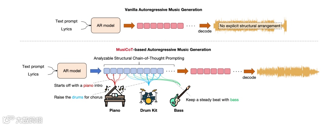 支撑这一能力的是其底层技术——MusiCoT(Music Chain-of-Thought)。该技术将思维链(Chain-of-Thought)引入音乐生成流程,使模型能主动规划整体结构、设计情绪演进、调配配器层次,最终输出具备完整创作逻辑的作品。