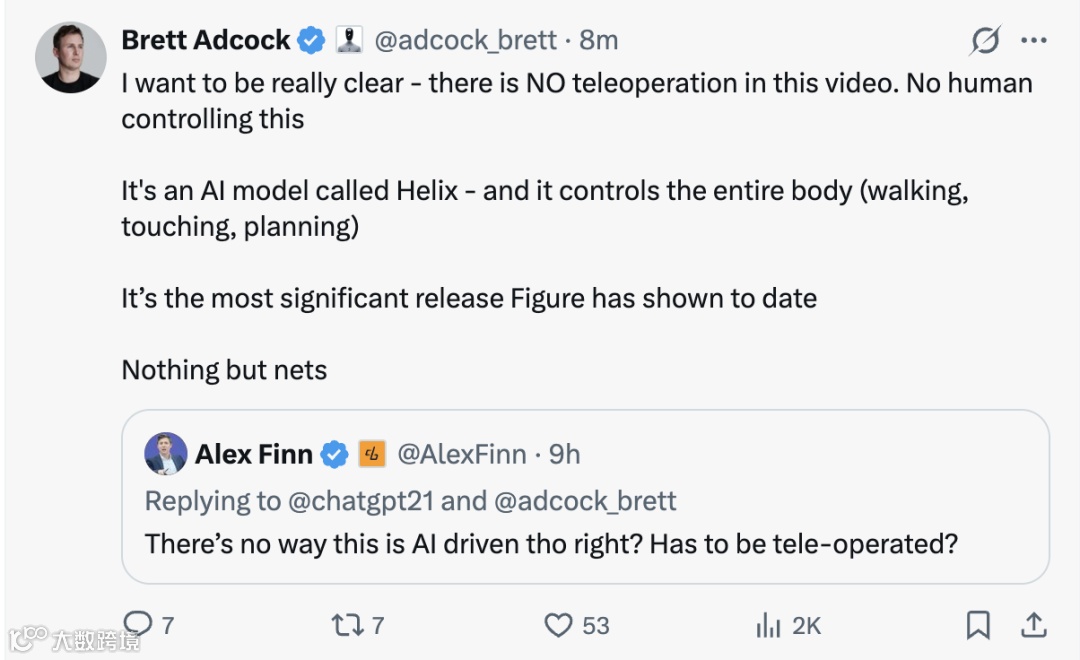 Figure创始人Brett Adcock表示:“机器人跳舞不难,真正的挑战在于智能控制。我们最强的模型来了,能完成复杂、长时序任务。”