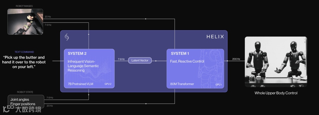 与此前上下半身分离控制不同,Helix 02首次实现端到端全身统一控制:视觉、触觉、本体感知等多模态输入直接接入单一系统,输出全身关节级动作指令。